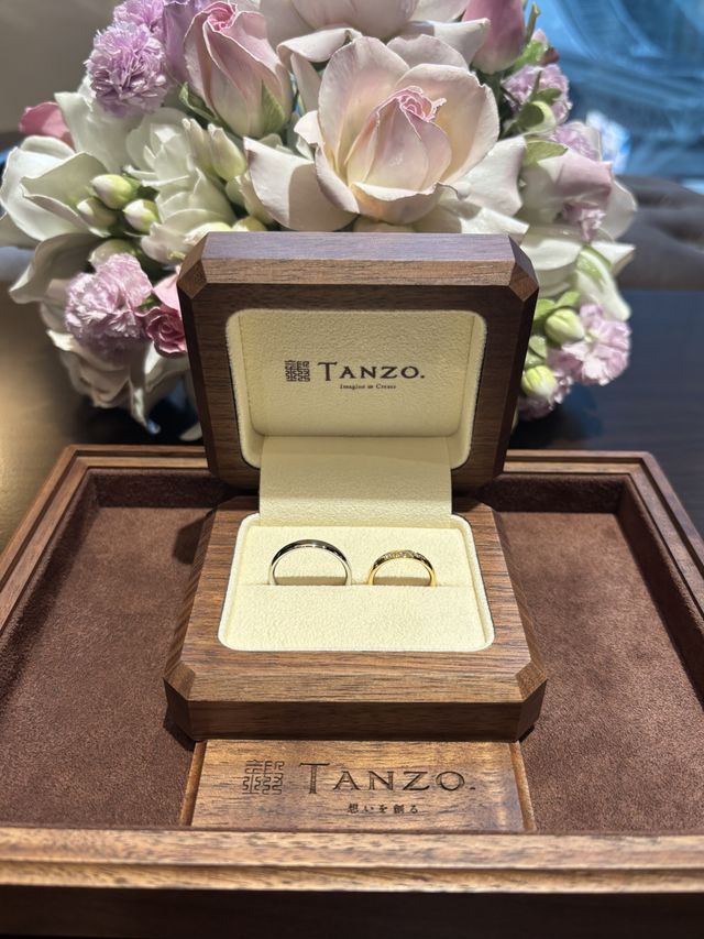 指輪選びの際に、複数ブランドのカタログを参考に絞っていきましたが、中でもTANZO.さんの指輪はカタログ内でも輝いて見え、細部までこだわるブランドなんだなと感じました。入籍指輪で、フィッティングを行ったのちに、指輪を製作してくださるので間違いのない一本が届きます。