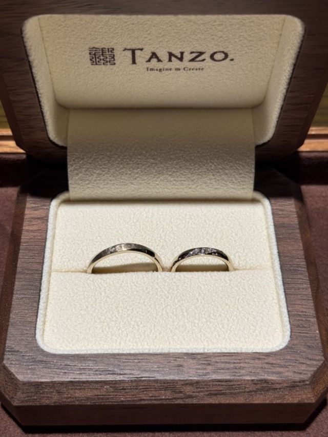 フルオーダーでシンプルなデザインから、細部までこだわった凝ったデザインにすることもでき、他ではないオリジナルのシャンパンゴールドを使った肌なじみのいい上品な指輪に仕上がりました。