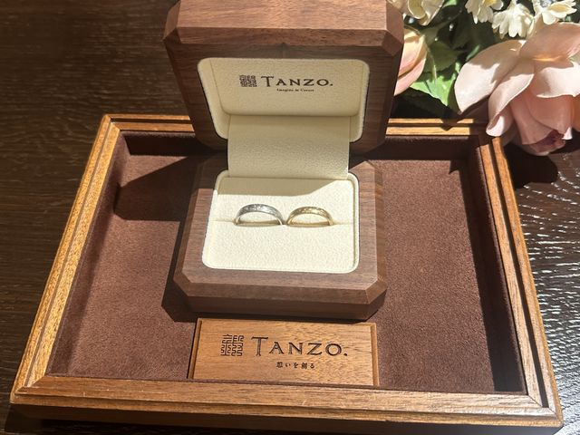 色はそれぞれ違うけれど、同じ加工を施すことでしっかりとペア感が出ていてとても気に入っています。お互いの個性を大切にしながらも、ちゃんと繋がりを感じられるデザインで、見るたびに幸せな気持ちになります。シンプルだけど特別感のある仕上がりで大満足です。