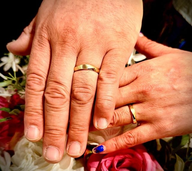 裏の見えないところにお互いの誕生石を入れたのも拘りです
