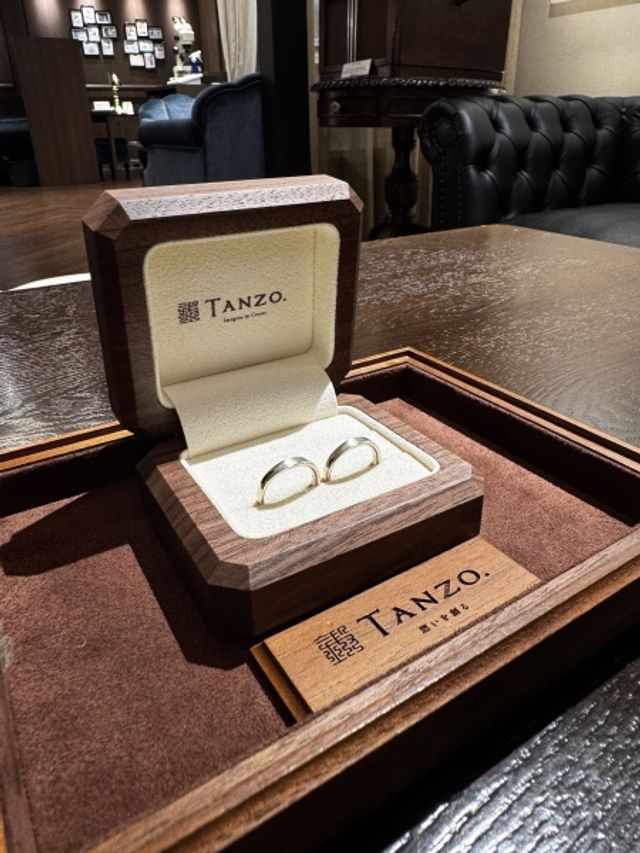 シックで高級感のある雰囲気、1枚板で出来た木のリングケース、技術力の高さなど全てが満足感高く、一生物のリング購入として非常にオススメできます。鍛造製法という持ちの良さも、Tanzoを選んだ決定打の1つでした。入籍指輪で指輪慣れ出来たのも、アクセサリーに慣れていない夫が特に喜んでいました。