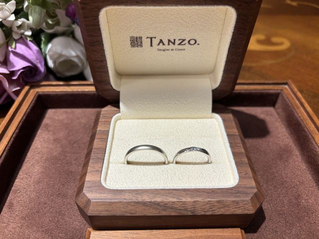 ゼクシィの雑誌に載っていたのを見て初めて知ったブランドでした。日本に昔からある鍛造技法で作られた指輪というのに魅力を感じてここに決めました。自分でデザインしてオーダーする指輪は楽しさや特別さがある反面、納得して気に入るものができあがるのか不安もありましたが、とても素敵な指輪に仕上げて頂きました。また、普段あまりアクセサリーをつけないので、入籍指輪で着用した時の着け心地やサイズ感を生活しながら試せるのがとても良かったです。