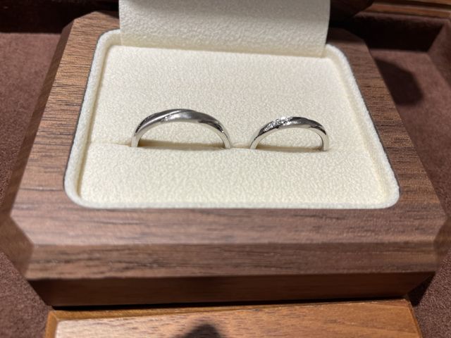同じ加工方法で仕上げてもらった結婚指輪は、統一感がありつつ、私のリングにはダイヤが入っていて“お揃いだけど全く同じではない”ところがすごく気に入っています。シンプルなのに特別感がありお願いして良かったなと思いました