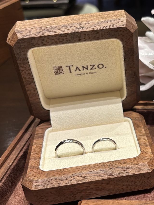 付け心地とカーブの丸み、内側の刻印にこだわりがありオーダーメイドのできるブランドを探して鍛造を選びました。アフターフォローだけでなく、製造方法や指輪のケースも1枚の木から手作りで作成しているところにも惹かれました。