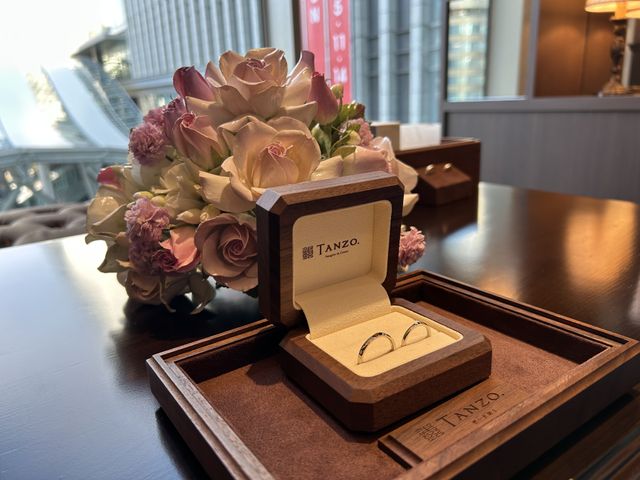 入籍指輪という仕組みで、自分の指と指輪の組み合わせについて考え、改めて本番の結婚指輪を製造するというシステムになっており、長期間自分と付き合っていくものについて、丁寧に作り上げていけるのが大変ありがたかった。鍛造製法で、強度の高い指輪になっているのもありがたい。