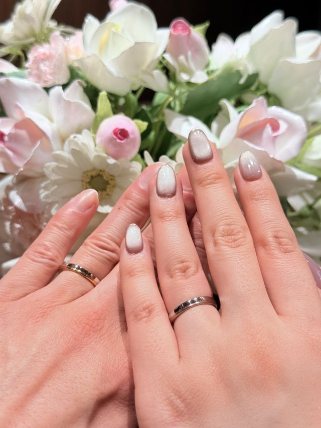 妻と同じコンセプトでデザインや材質選定を行いました。私はプラチナとイエローゴールドを選びそれぞれのグラデーションに力を入れました。特にダイヤモンドダスト加工はオススメです。メリハリあるゴージャスな仕上がりに大満足しております。
