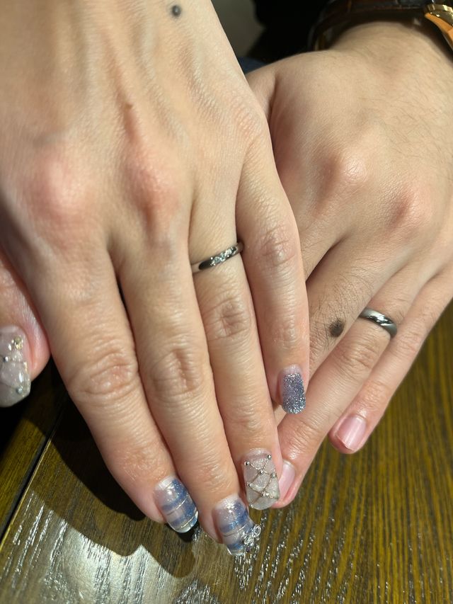 特に、リングの内側にお互いの名前と、それぞれの好きな石も入れられたので、唯一無二な感じも出て満足です。