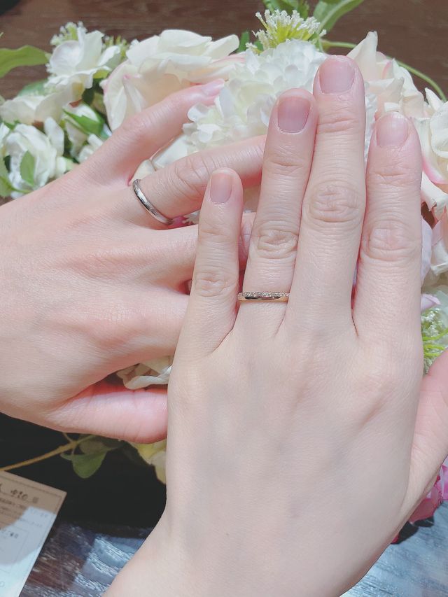 フルオーダーなので、自分達らしい指輪を妥協なく作ることができます。また、他店ではピンクゴールドの指輪のサイズ直しは、硬い素材の為不可能だと言われてしまう事が多かったのですが、TANZOさんでは金属関係なく安い価格でサイズ直しができるとのこと。生涯安心してつけ続けられると感じ購入を決めました。