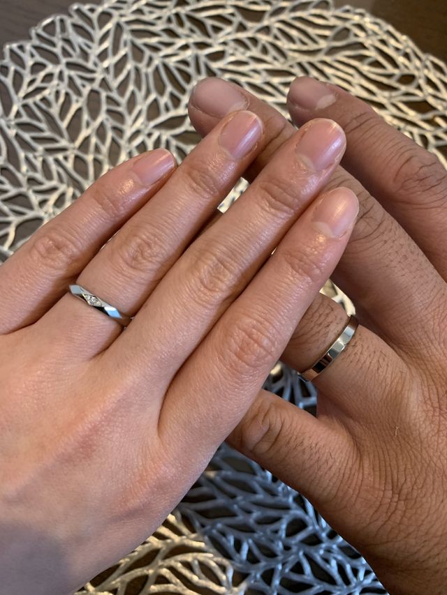 前撮りの日程をプランナーさんに伝えたところ、オーダーメイドで作成に時間がかかるにも関わらず納期を前倒してくださったので、撮影日に結婚指輪を着用することができました。お心遣いとアレンジメントに感謝です。