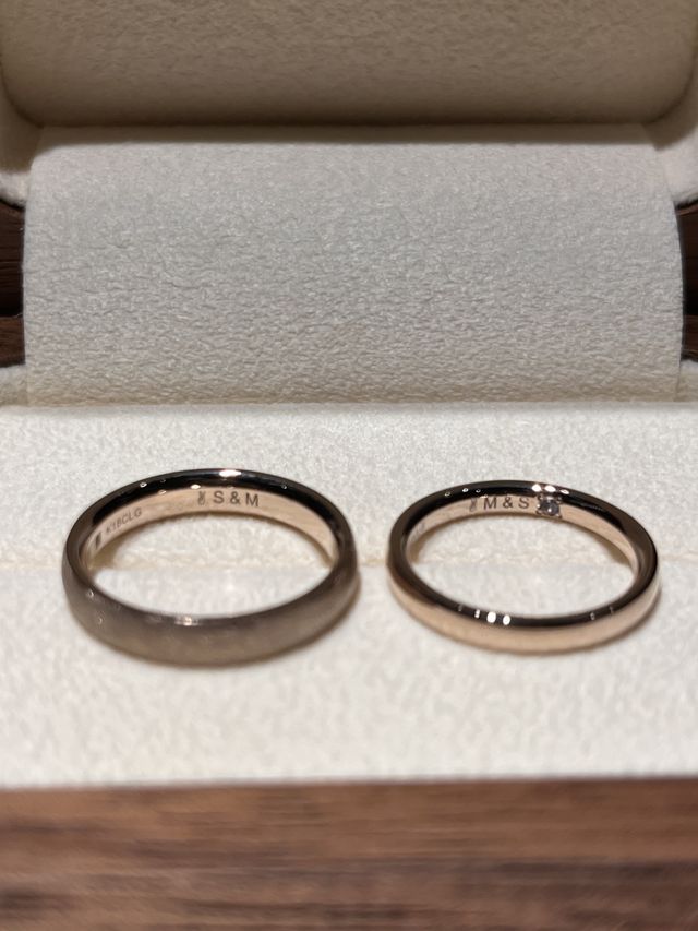 世界に一つだけの結婚指輪を作りたいと思っていたので、お互い同じカラーですがデザインはそれぞれ拘って決められたのでよかったです。