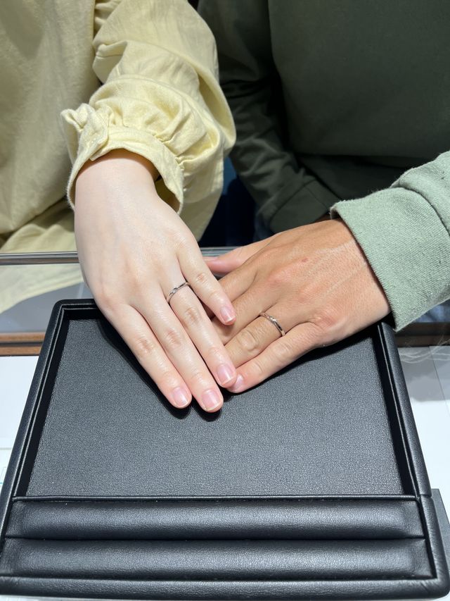 彼のほうにもブラックダイヤがついてあるのがかなり決め手でした。派手すぎず、職場にもつけていけそうです