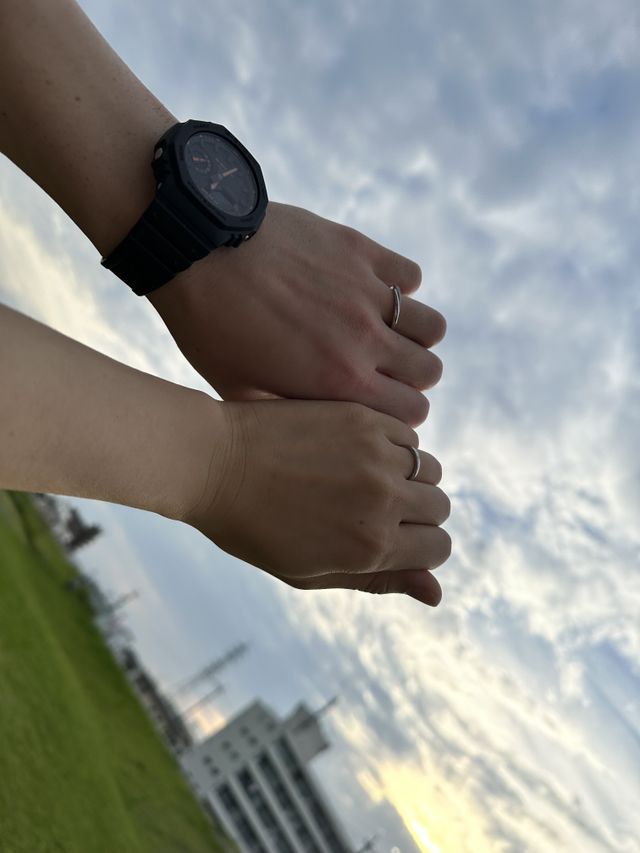 シンプルで自分の手に合っていて、長くつけても飽きないデザインにしました。彼はシルバーが合わなかったため加工をしてもらいとても似合うようになりました。私はダイヤを一つつけてもらいました。着け心地とても良いです。