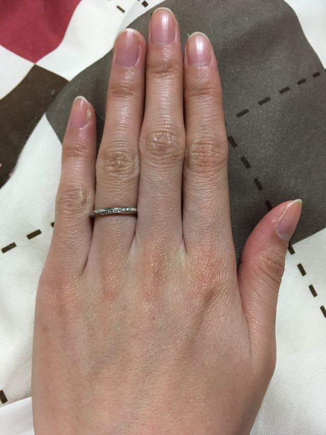 当初は予算外になってしまい悩んでいましたが、旦那の指が細く女性用のリングでもセミオーダーで特注していただき予算範囲内に抑えることができました。