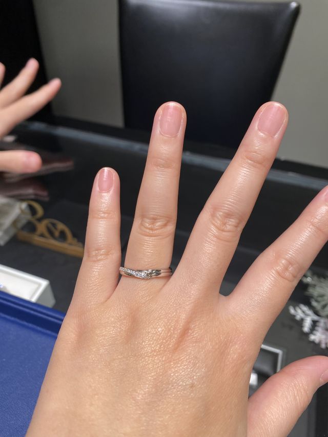 お店の中の雰囲気は高級感があり、接客は椅子に座りながら受けることができました。飲み物とお菓子を出してくれて快適に過ごせました。指の形も見てくれて水かきの角度を教えてくださり、自分に合いそうな指輪をたくさんみせてくれました。