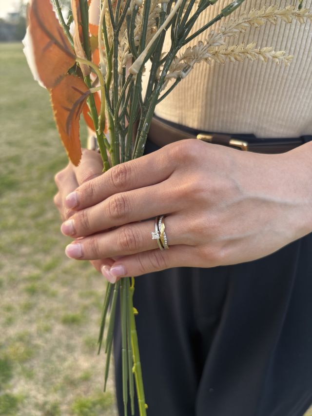 お店の方がとても丁寧に対応してくれました。自分が気になっている指輪の他にも、似ている指輪やおすすめのものを教えてくださり、妥協せず、お互い気に入った指輪を購入することができました。購入する決め手ともなりました。