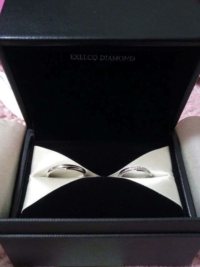 色んなお店で好みと似ているものを探して比較しました。斜めにダイヤが入っているのを探していましたが、こちらはただダイヤが並んでいるだけでなく、ラインもさり気なく入っているので立体感があって見えました。他にはないデザインでした。