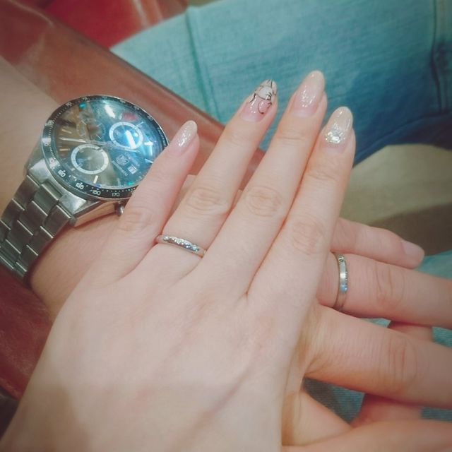 彼はストレートラインでポイントがあるもの、私は(おそらくつけっぱなしになるので)質が高く少し手元を華やかにしてくれるような指輪が良いとは思っていました。が、試着を繰り返した結果、どれも同じに見えてきてしまい…いまいち決め手がない状態でした。
