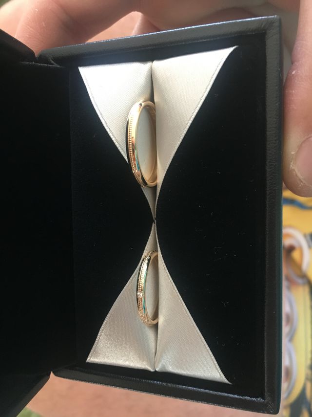 指輪の決め手は、シルバーとゴールドで迷いましたが、ゴールドにしました。スタンダードでは面白くないので個性があるレース柄で決定しました。五月の結婚式で結婚指輪を付けるのでとても、たのしみです。ありがとうございます。