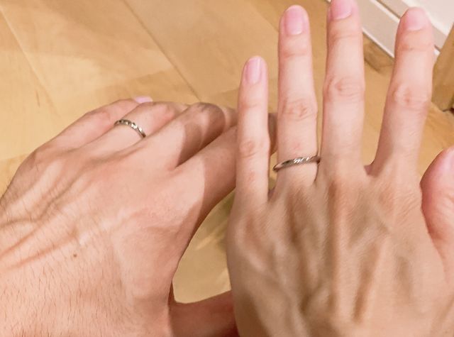 シンプルだけど、他にないデザイン。特に男の人の指輪でブラックダイヤモンドが入っている個性的なデザインが他になく、それも決め手になりました。指輪の太さや丸みも、太すぎずちょうど良く気に入りました。色々試着しましだが、こちらにしました。