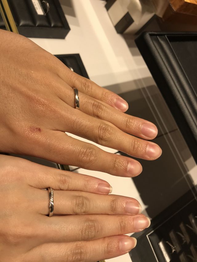 ウェーブのタイプの結婚指輪で探していましたが、つけてみると、ストレートなのにウェーブのように指に馴染みました。
