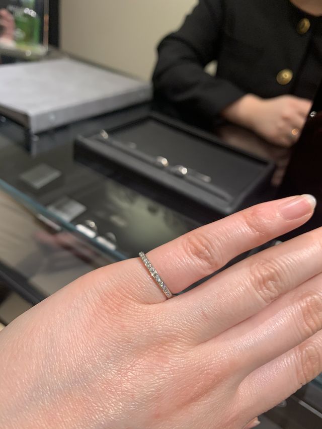 どんな指輪にしたいか、決められずにいましたが、いろいろなブランドで、いろいろなタイプの指輪を試着したことで、シンプルなデザインのハーフエタニティにしようと決めることができました。