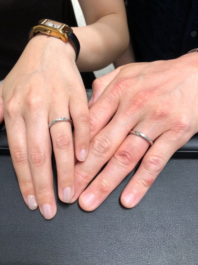 男性用のデザインも一部艶消しが入っているので、良く見ると一捻りされていて気に入りました。