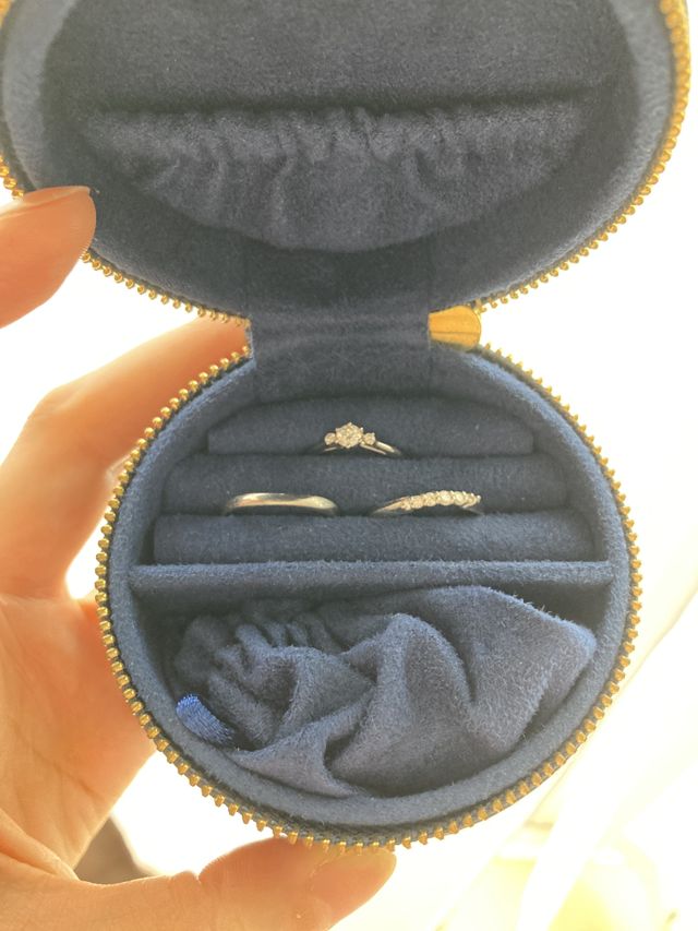 ダイヤモンドの煌めきをいつも見ていたかったので、普段使いできる範囲内での、大きめのダイヤが並んでいるタイプを選びました。毎日つける結婚指輪ではあるものの、ダイヤがいつもキラキラ光っているの存在感のあるデザインだったのでとても幸せな気分になれると漢字選びました