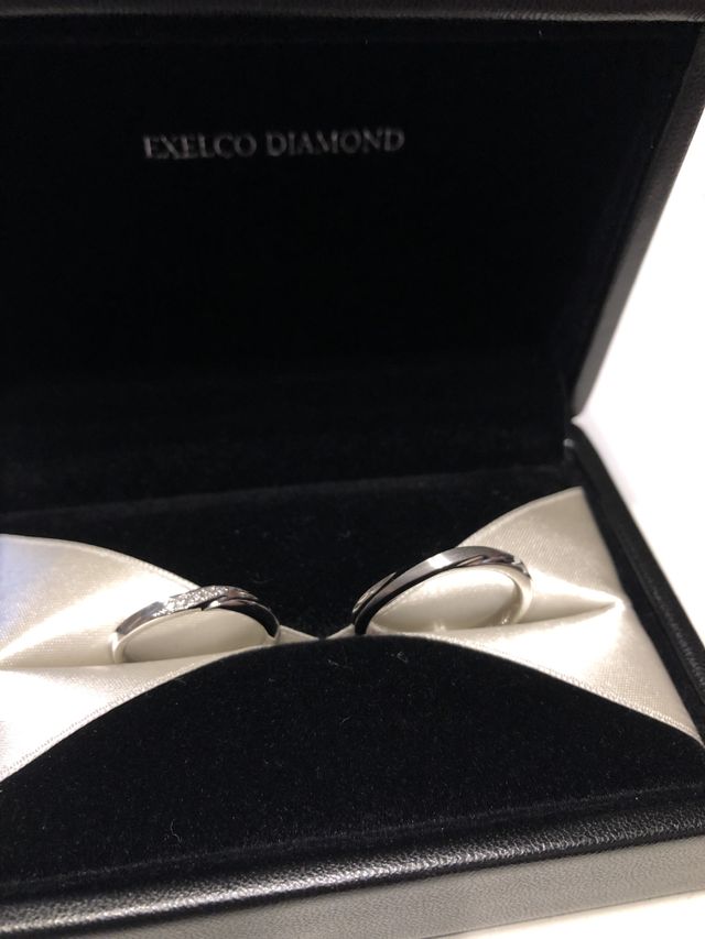ウェーブのデザインが気に入って決めました。女性用はダイヤが入って華やかですが、主張しすぎないので飽きないデザインだと思います。男性用は表面の艶消し加工がカッコいいです☺️お店の方が男女でデザインを分ける方が8割と仰ったので別々のデザインにしましたが、形は似ているので違和感はありません。