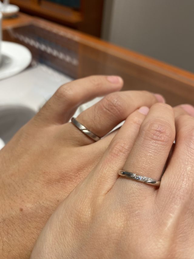 婚約指輪と同様に、親身に相談にのってくださるスタッフの方が多く安心できました。同じようなデザインで迷っていて、どこを重視するか決めかねているとき、2人で相談できるよう席を外してくださったり、ちょっとした心遣いがありがたかったです。