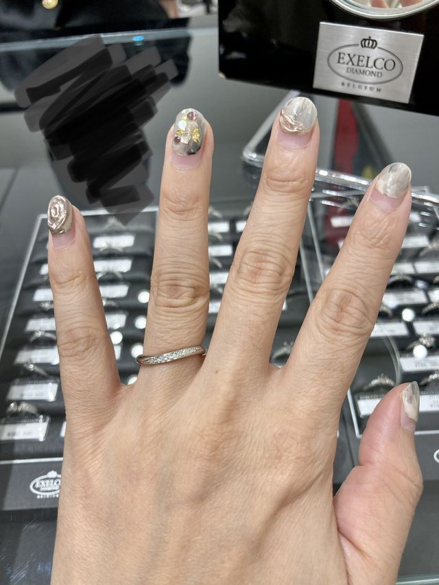 普段指輪を付けない同士のためデザインや着け心地・値段などにも散々迷い数多くの指輪を試着したため3時間弱もおじゃましてしまったにも関わらず、嫌な顔ひとつせず非常に丁寧な接客をしていただけました。