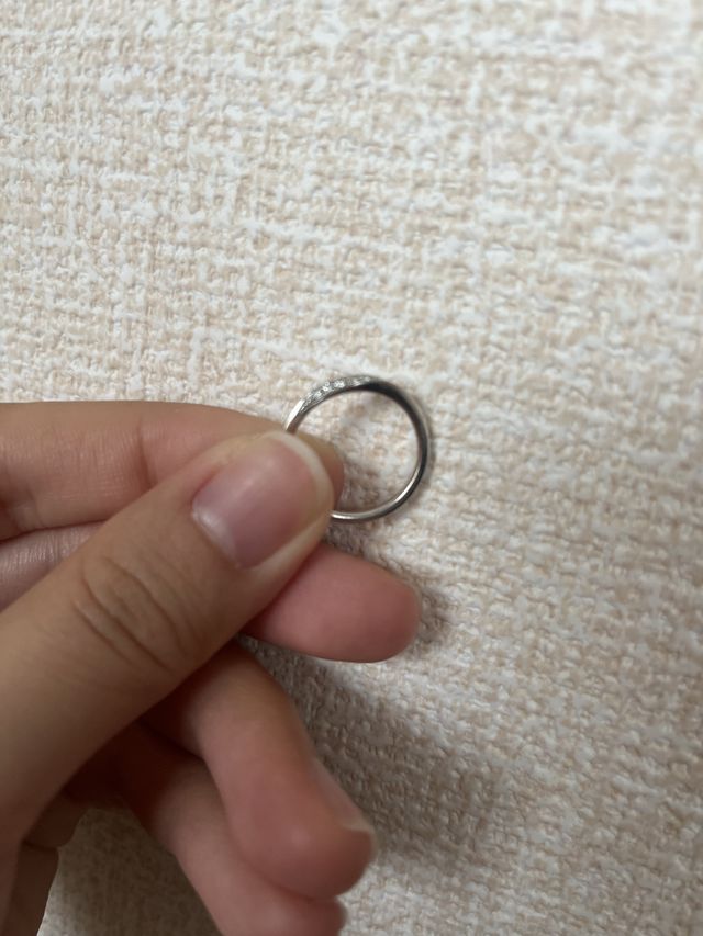 キラキラ感がとっても可愛いかったのと、婚約指輪との重ね付けの印象がいちばんしっくりきました。重ね付けでなければ単体だと可愛いなと思うものも他にありましたが、お出かけの際などかさねてつけたいので、重ね付けで綺麗に見える指輪を結婚指輪として購入しました。