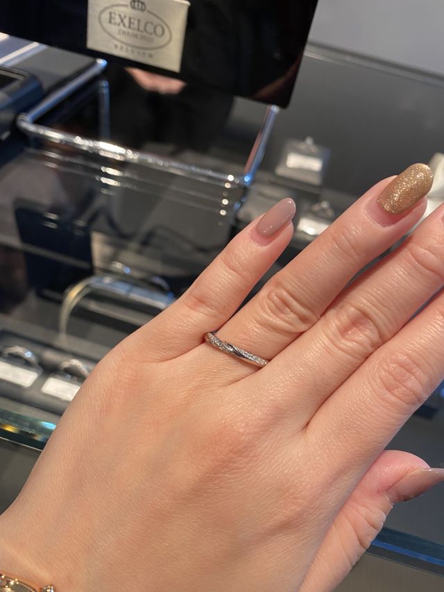 とにかくデザインの種類が豊富だなと思いました。指輪の形から、ダイヤの付き方まで、一つひとつが繊細で選ぶのが楽しかったです。また、一生保証がついていているので、サイズ直しやクリーニングをしていただけるのは素晴らしいと思いました。