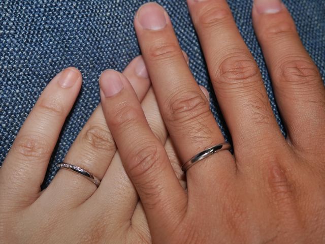 ダイヤが半周ねじれるように入っていたり、女性物には珍しくツヤ消しの部分があったりとあまりないデザインだったから。旦那さんも気に入りましたし2人共が気に入ったところが最大の決め手です。重量感もほどよくあります。