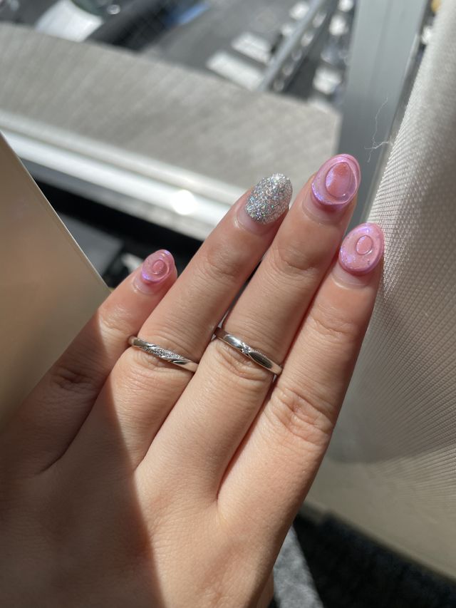色々なデザインを店員さんに相談すると、おすすめを持ってきてくださり、マット加工もその場で試してみせていただけたので、実物で考えることができよかったです。