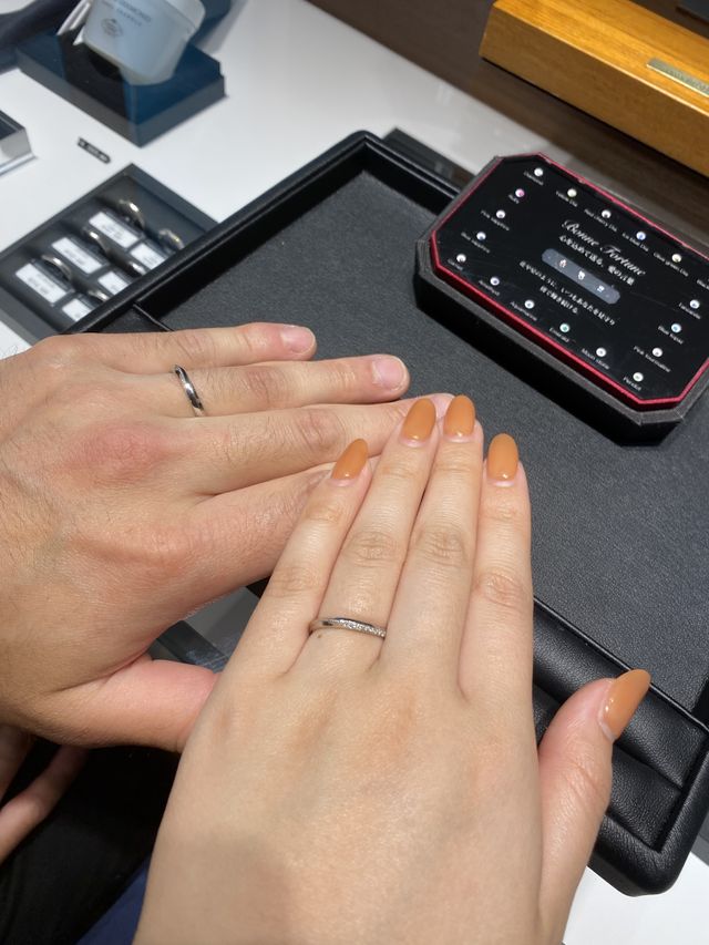 シンプルから個性的なデザインまであり、試着していてとても楽しかったです。永久保証でいつまでも安心して着けていけるところも、決め手の一つでした。
