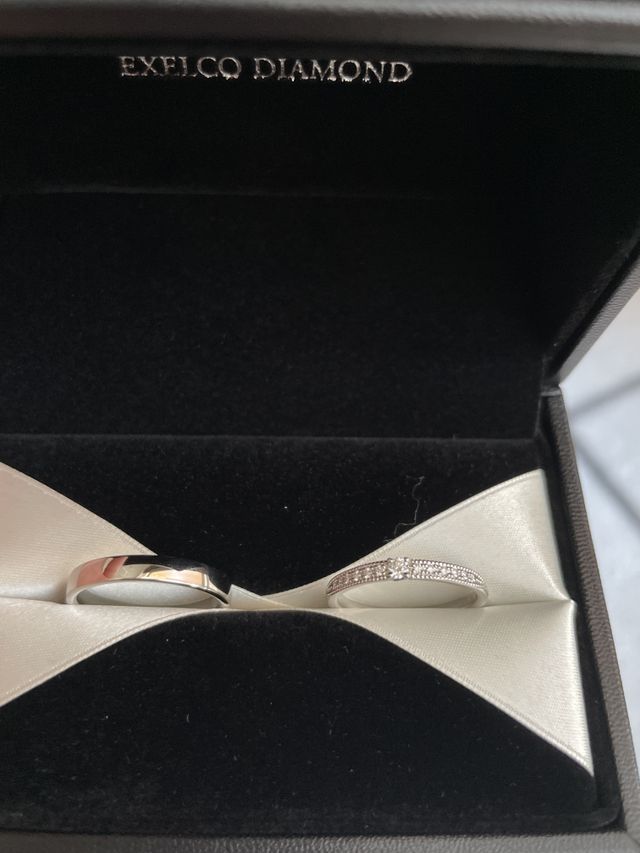 ダイヤモンドシライシとエクセルコダイヤモンドをたくさんの種類を見させていただきました。そのなかでダイヤモンドシライシはシンプルで大人っぽいデザインが多かったです。購入したエクセルコダイヤモンドはゴージャスなデザインが多いなと思いました。
