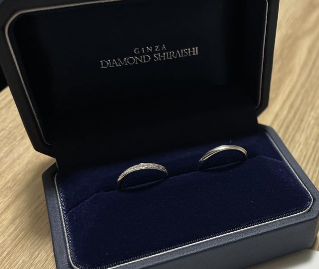 指輪の決め手はダイヤモンドの輝きとスタッフさんの提案力でした。他の店で指輪を探していたときは正直ダイヤモンドの輝きなどは気にしておらず、自分がつけたいと思うデザインを重視していましたが、こちらで指輪を見せていただいたときにデザイン以上にダイヤモンドの輝きに目が奪われました。また、他の店で気に入ったデザインをお見せしたところ、似たものから少しデザインの異なるものを提案していただき、さらにはふわっとした表現で要望を伝えて、ドストライクなものに出会うことができました。