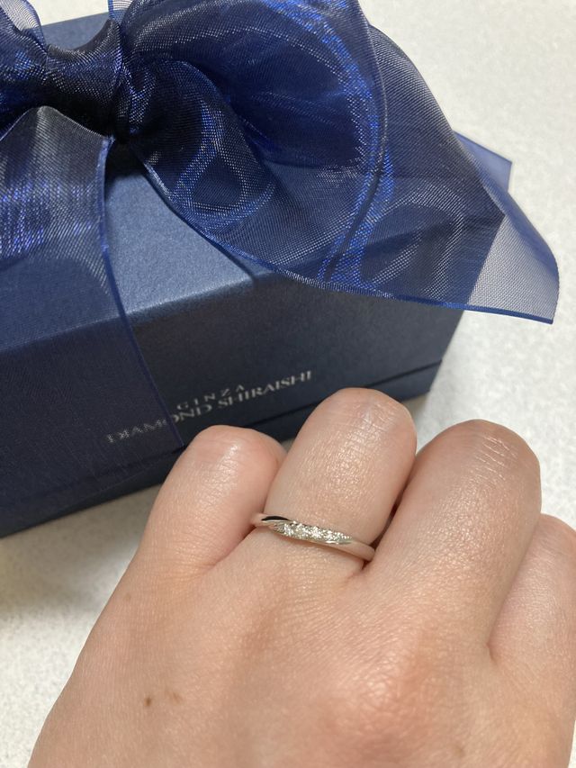 色んな種類を何回も試着しましたが、時間がかかっても嫌な顔ひとつせずに親身にしっかり寄り添いながら一緒に考えてくれたのでシライシさんなら気持ち良く指輪選びできる点もオススメです◎