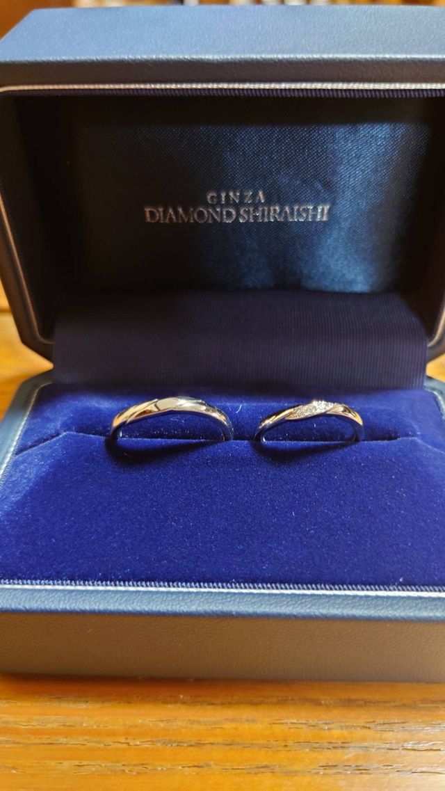 婚約指輪のデザインと合うようなデザインのものを探していて、店舗でいくつかデザインを見せていただいたところ、イメージにぴったり合ったため。また、男性側の指輪がツヤっぽいものがよく、その点も気に入ったため。