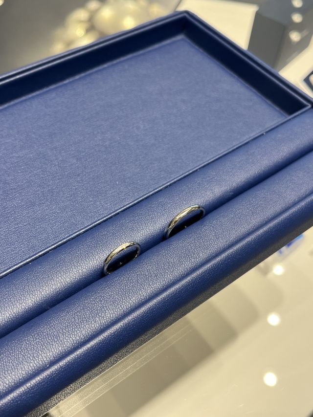 元々シンプルなデザインが良く、いくつかに絞りました。担当してくださった方が指輪の印象や良い点悪い点を説明してくださったり、実際に試着して自分からの見え方、鏡に写し他人からの見え方を確認し、購入にいたりました。