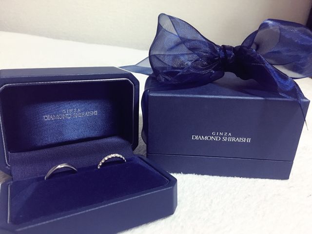 旦那の指輪は担当さんからお紹介してくれました。簡単なwave形で二種類金属を加えて、地味ではないと思います。