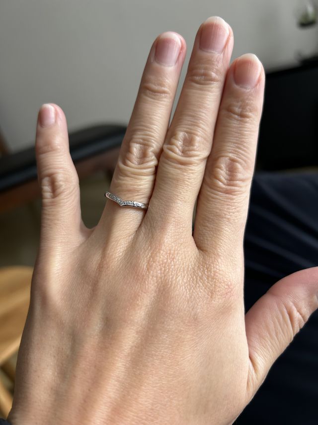 初めてプロポーズリングと結婚指輪は自分で選ぶ事が他のお店では出来ないオーダー等出来て楽しく、出来上がりが楽しみでした。出来上がりも最高でした。これからも長く毎日着けていくものなので、大切に着けさせていただきたいと思います。