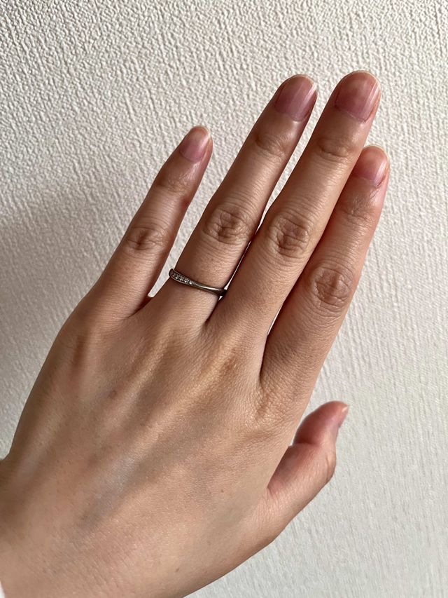 偶然、婚約指輪との重ね付けもバッチリハマって、これしかない!と2人でびっくりしました。デザインもシンプルでずっとつけていられます。