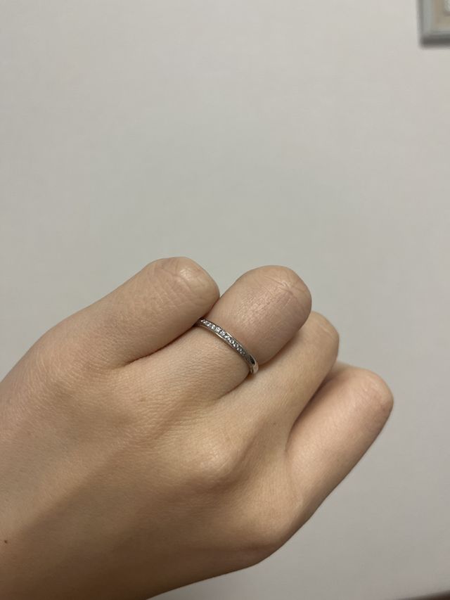 また、指輪の半分にダイヤモンドが着いているので派手過ぎずに会社にも付けていくことができています。