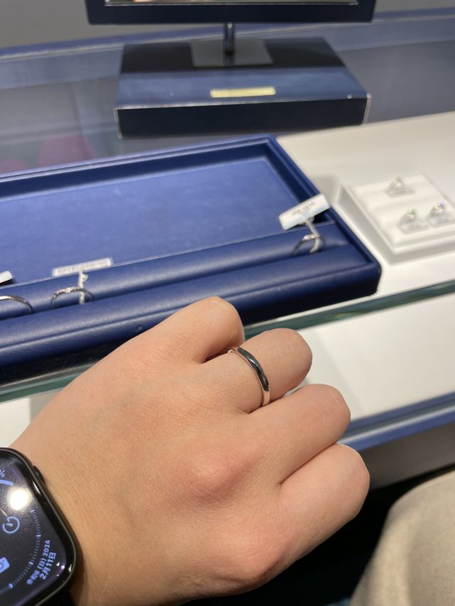 指輪のイメージを担当の方に伝えると、それに応じたデザインをたくさん提案してもらうことができました。この指輪は、シンプルながらもデザインにさりげないこだわりがあり、飽きることなく使えると思い選びました。
