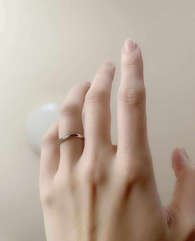 少し細く感じる方もおられるかもしれませんが、デザインもギラギラしておらず、さり気ないダイヤが指を素敵に見せてくれます!価格も高すぎず、比較的に優しいかなと思います。