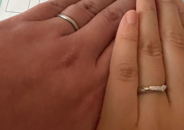 リングに込められた想いが素敵だった。デザインにストーリー性があるのがとてもロマンチックに感じ、このリングを選ぶ決め手となった。見た目はシンプルだがダイヤの輝きが美しく、ペアで2つ合わさった時の見栄えも良い。