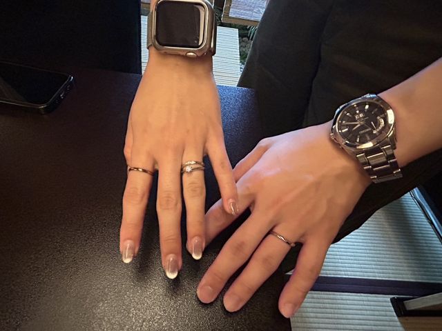 つけていて、指が細く見えるところや、見た目の可愛らしさに惹かれた。アフターサービスも充実してるため、今後長く使えそう。婚約指輪と重ね付けをした時に婚約指輪がより綺麗に見えるところもおすすめポイントです。