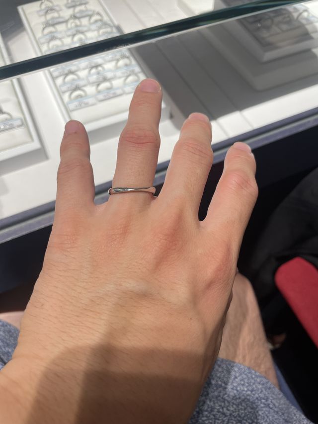 接客はすごく丁寧で感動を覚えるレベルだった。あまりイメージが固まっていない中で来店したが、私たちのざっくりとしたイメージと今まで使っていたペアリングのデザイン等から、元々見に行ったものと別の指輪を探してもらい、結果的にそれを購入した。