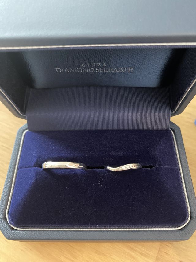 指輪を選ぶ際には、店員さんが明るく接客してくれて、こちらもとても幸せな気分になり、指輪選びもいい思い出になりました。結婚指輪が出来上がった際には、店舗で記念に写真も撮っていただき、いい記念になりました。